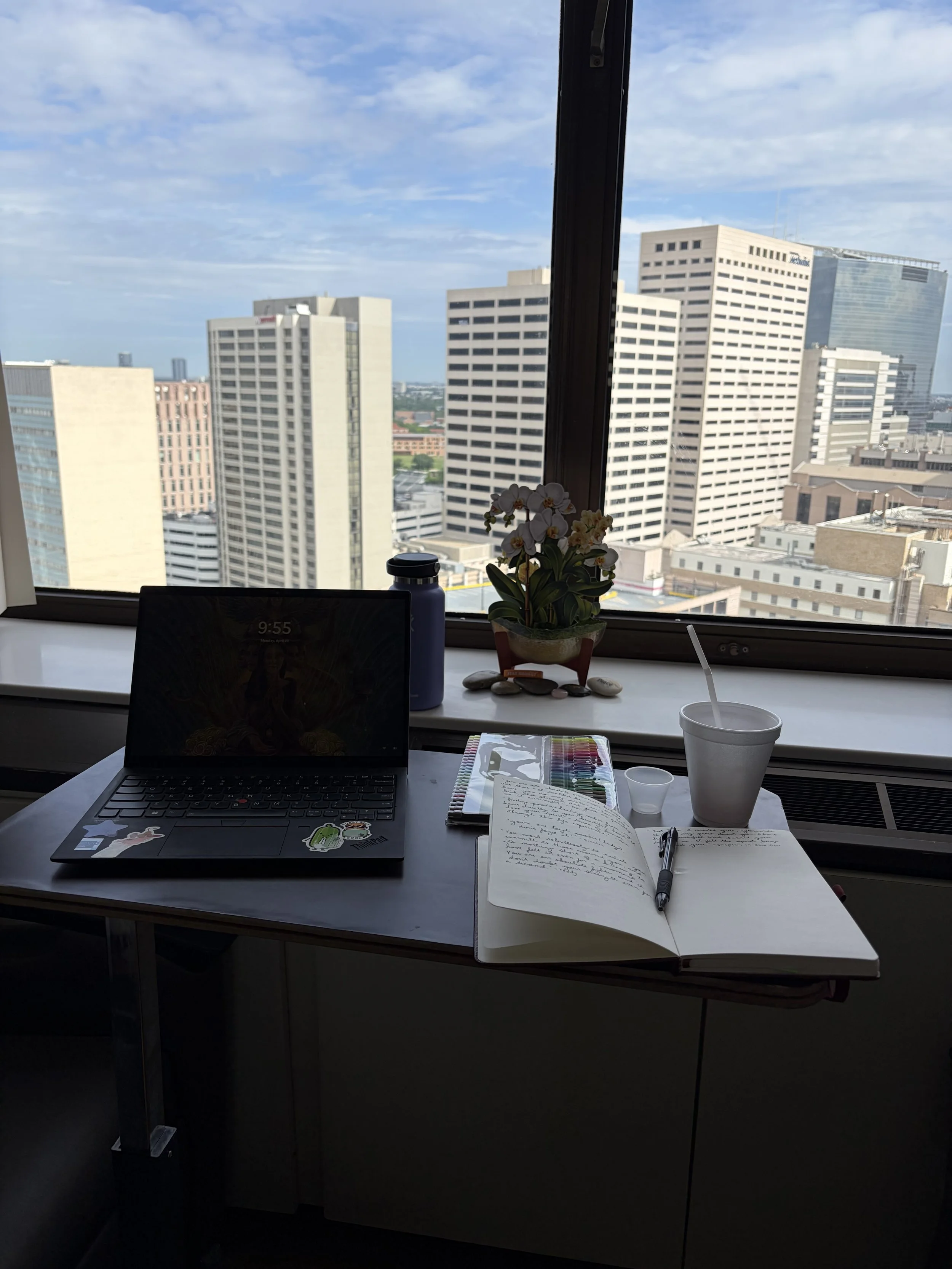 I set up my desk space to begin, slowly but surely, connect and respond to all of the lovely people who’ve reached out to me during this journey. I have a page in my journal dedicated to ‘Those in my Corner,’ and I write down all of your names. Reading your words brings the color back to my skin and the spring back into my toes.